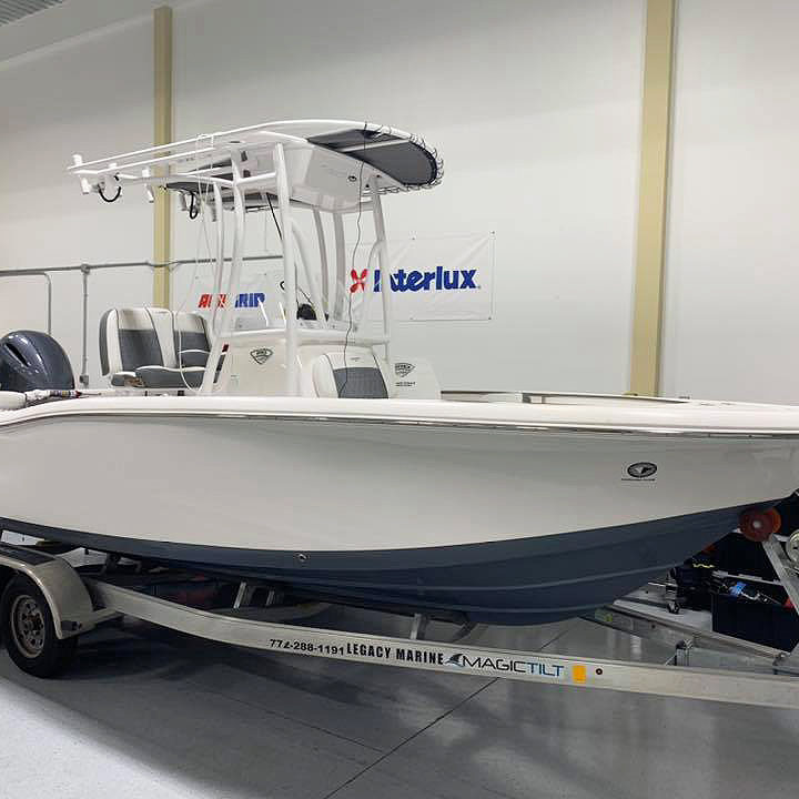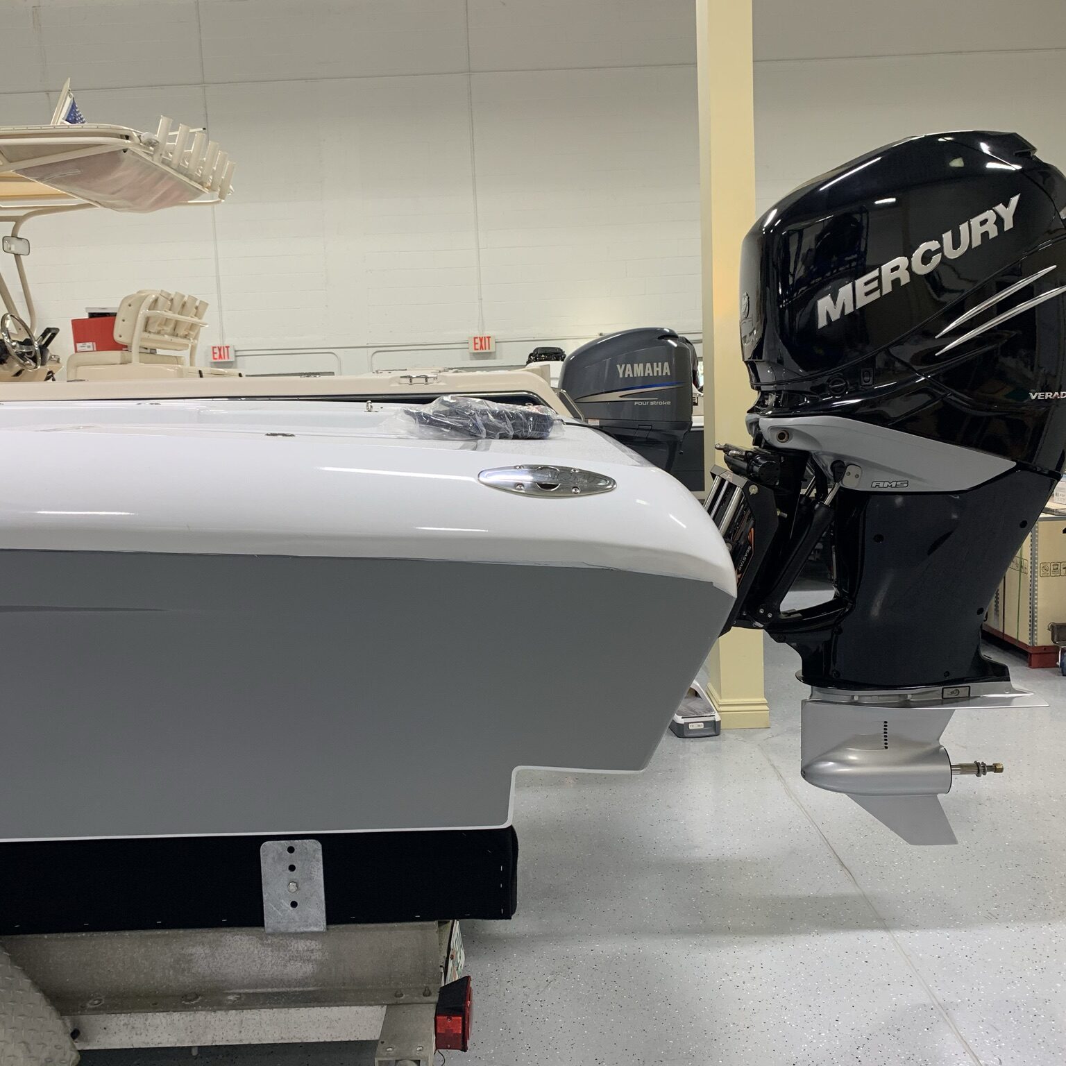 The team has been hard at work on this Hewes Bayfisher! We repowered with a new Mercury Marine 150hp ProXS, installed a new console, new motor rigging, rewired electronics, added Bocatech switches, moved the batteries from the rear to the console, added underwater lights as well as under gunnel lights.