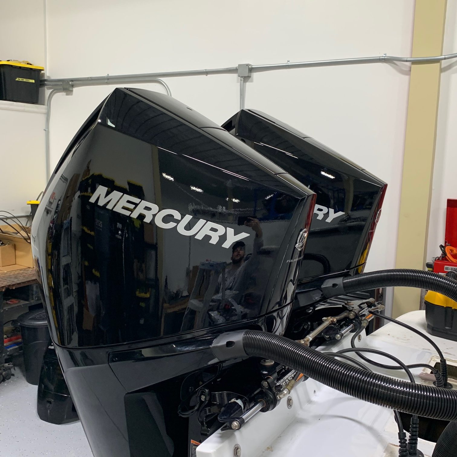 Just finished repowering this Pursuit Center Console with a pair of new Mercury Marine 225 hp FourStroke’s!